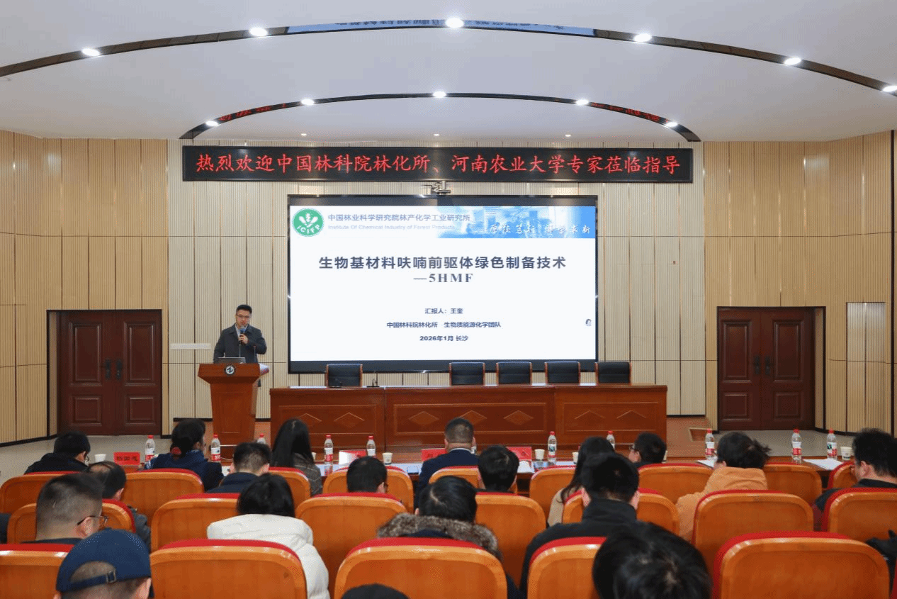 16日,学校科学研究部的支持下,化学与化工学院特邀中国林业科学研究院林产化学工业研究所刘鹤王奎两位研究员来校开展学术交流并作主旨报告。河南农业大学教授刘艳艳科学研究部部长卿彦、副部长周航化工学院班子成员及师生代表200参加报告会。本次报告特邀卿彦教授主持。