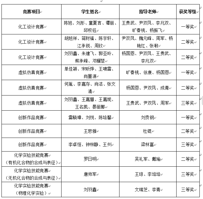 附 第十五届湖南省大学生化学化工学科竞赛中南林业科技大学获奖情况一览表