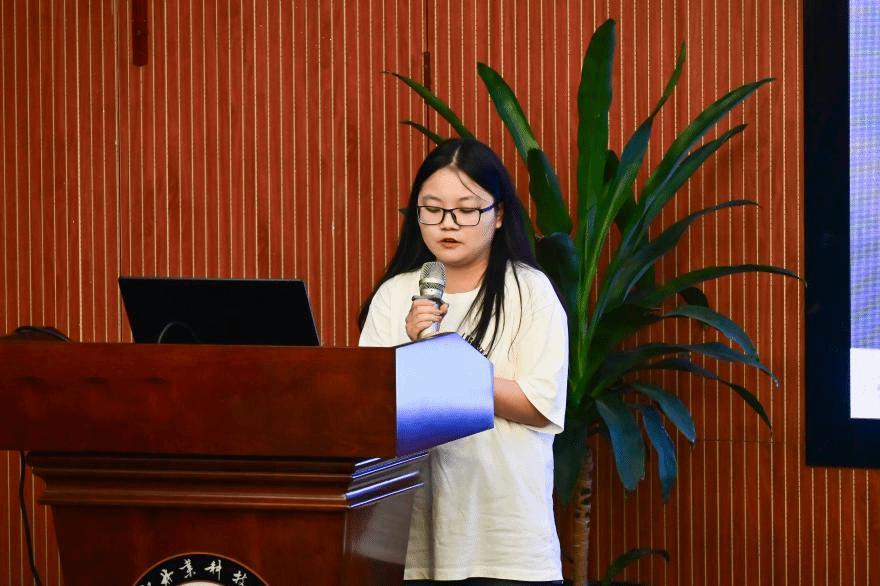 2024级新生研究生代表谢清清在发言中倡导同学们要珍惜时间,合理规划研究生学习生活;注重团队合作,学会沟通;要保持身心健康,劳逸结合。