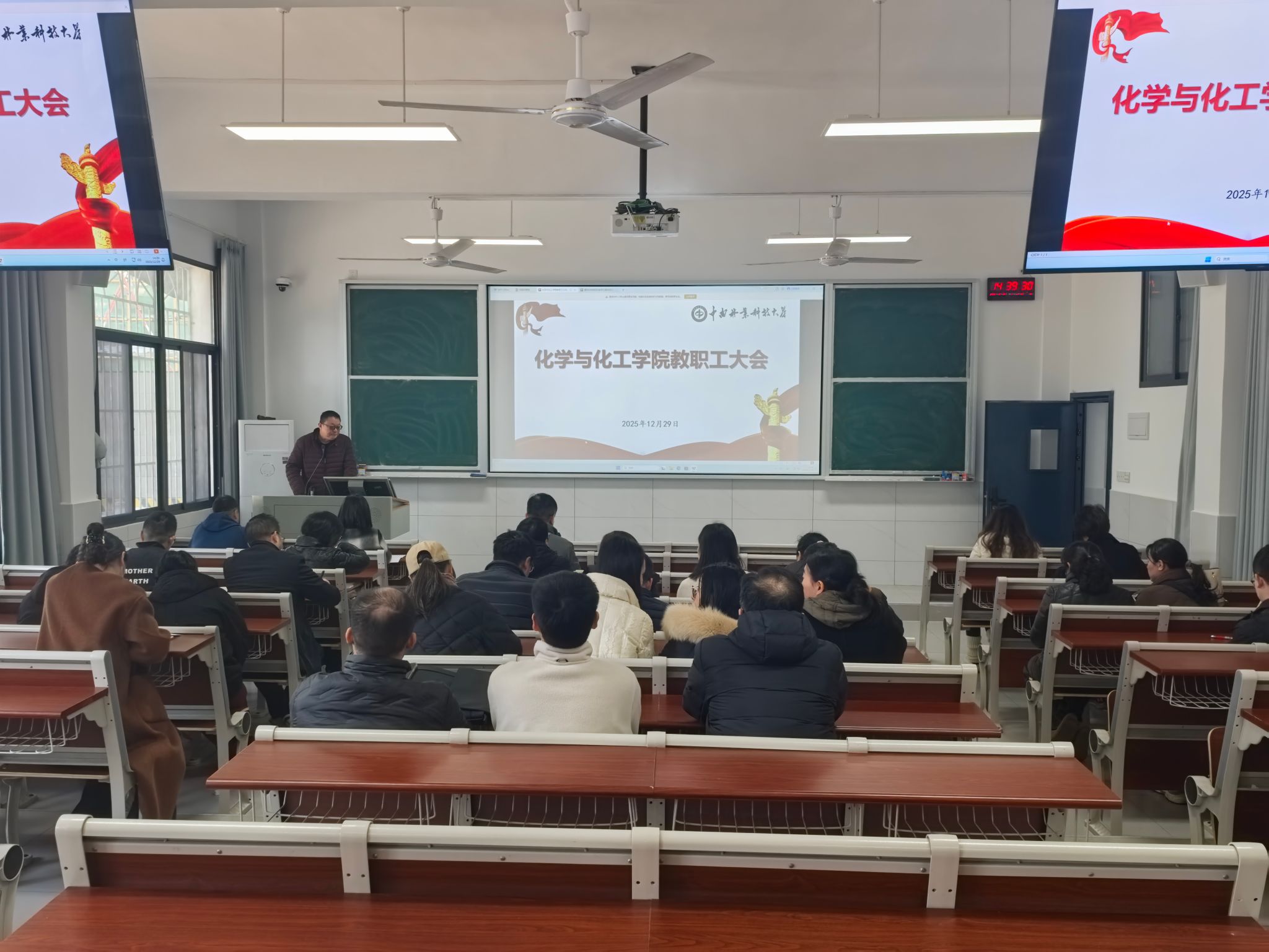 讲座之后,副院长杨国恩总结了2025年学院教学、科研、人才培养等方面取得的成绩,并对2026年的重点工作进行部署。邹敏对学院学生工作和校友工作进行总结。